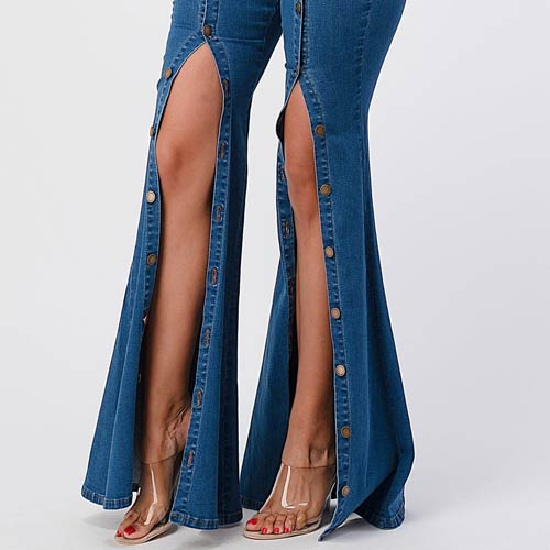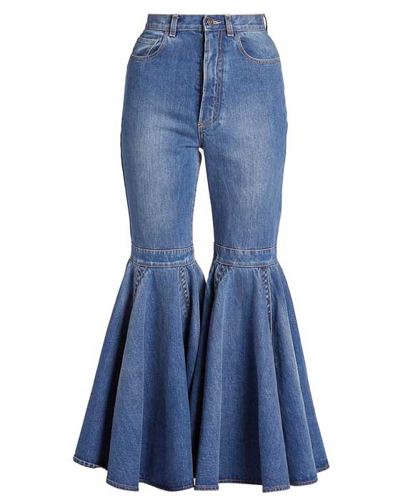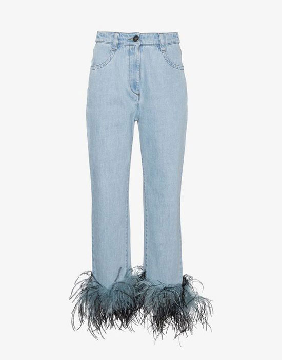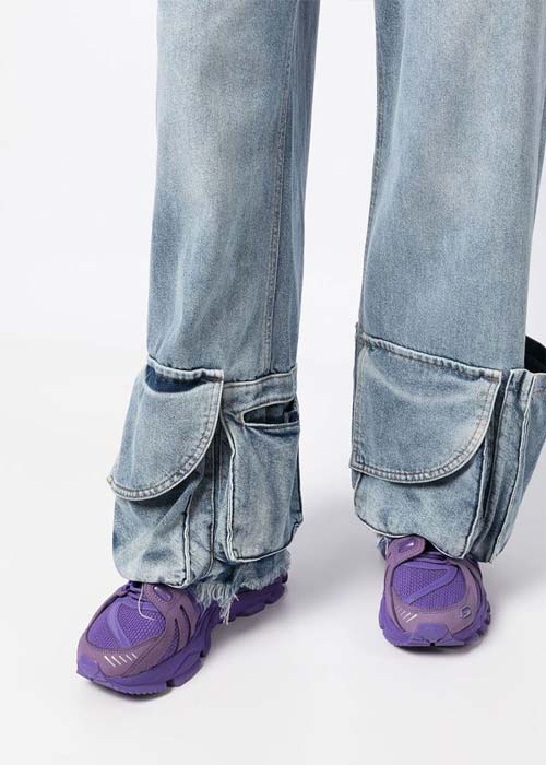 Another design highlight lies in the pant legs. Apart from the usual straight, slim, flared, and wide-leg styles, there are also features like ruffled edges and patched hems.
