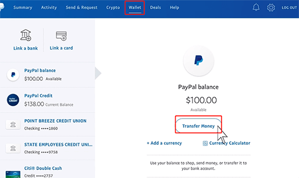 Step 1: Choose āWalletā and āTransfer Moneyā below the PayPal balance