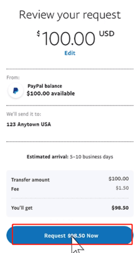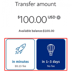 This method is in two ways to withdraw your money from the PayPal account. If you want to get an instant transfer, it will be charged; if you donāt want to pay charges, you can choose to receive it in 1-3 days.