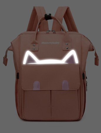 Backpack manufacturers produce this-style mom bag for even weight distribution, comfortable wearing, and the convenience of having both hands free. These bags typically offer a spacious interior with various pockets and compartments to accommodate items like diapers, bottles, baby clothing, etc. Also, there are several small design elements that enhance functionality: the hook for hanging on a stroller; anti-theft features; USB charging port for added convenience; and front reflective strips for added safety during nighttime outings.